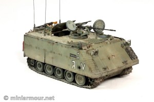 The kit is an old Academy piece. The quality – well it is Academy. It is nowhere close to the level of detail or finesse seen in today’s releases. To add detail I used quite extensive Eduard photoetch set. The most impressive part of this is the representation of the unique TOGA armour suite as was used on the Israeli M113s in Lebanon in the 80s. Looking at it now, I managed to put it together rather well.