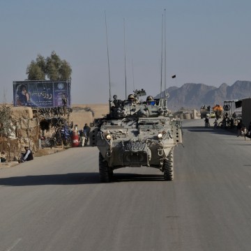 Soldiers from Task Force Kandahar transport and provide security in a LAV III for the Task Force Kandahar (TFK) Command around the TFK area of operations.