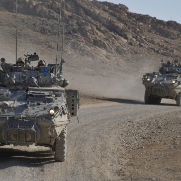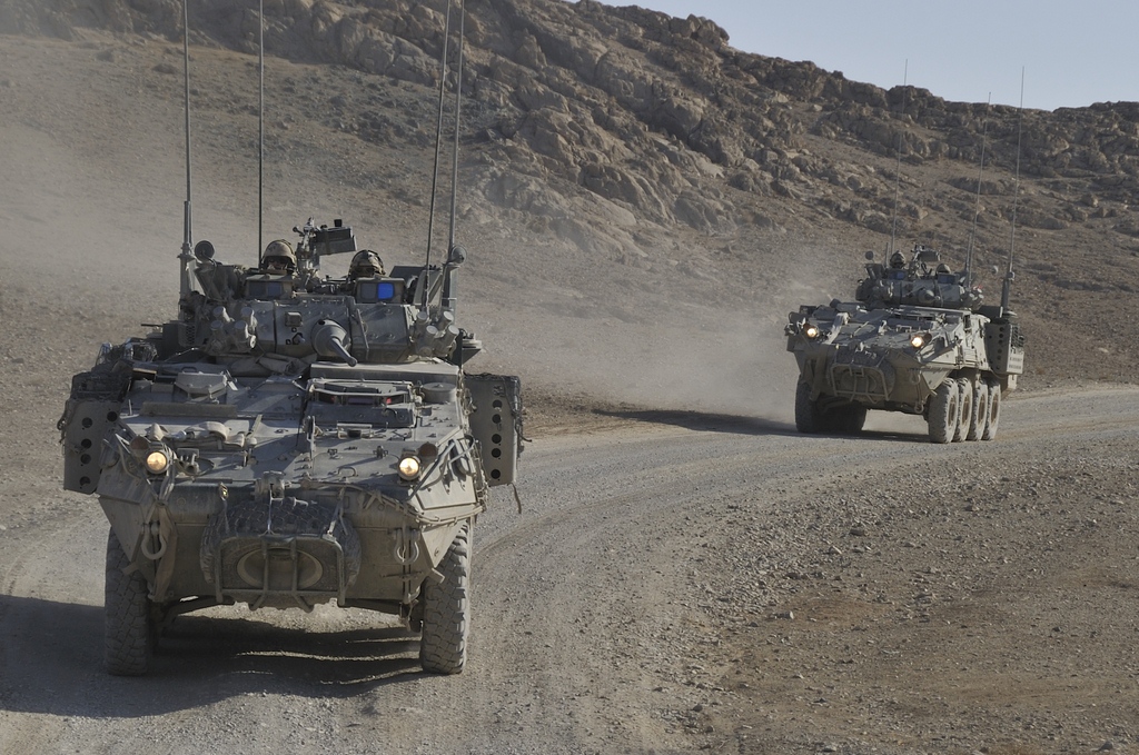 Soldiers from Task Force Kandahar transport and provide security in a LAV III for the Task Force Kandahar (TFK) Command around the TFK area of operations.