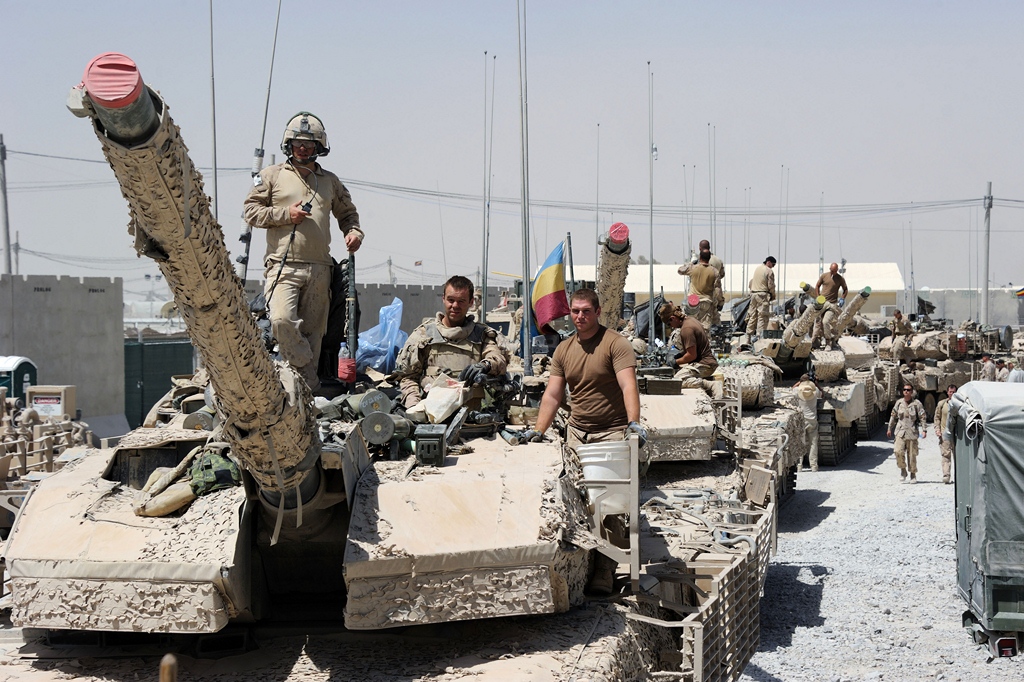 After arriving at Kandahar Airfield, Leopard II tanks and their crews from 12e Régiment Blindé du Canada Squadron âCâ, lineup to hand in all of their unused ammunition.