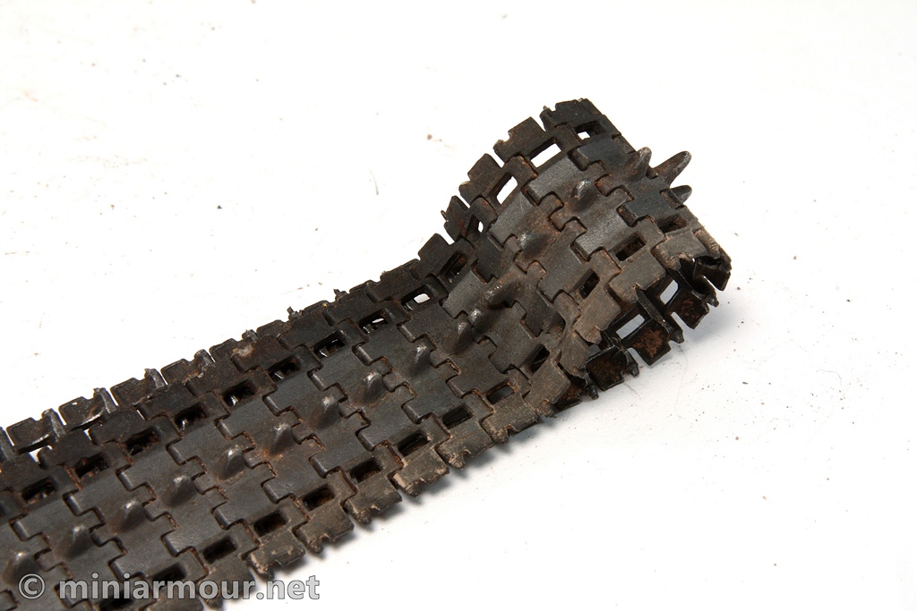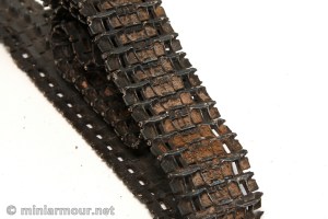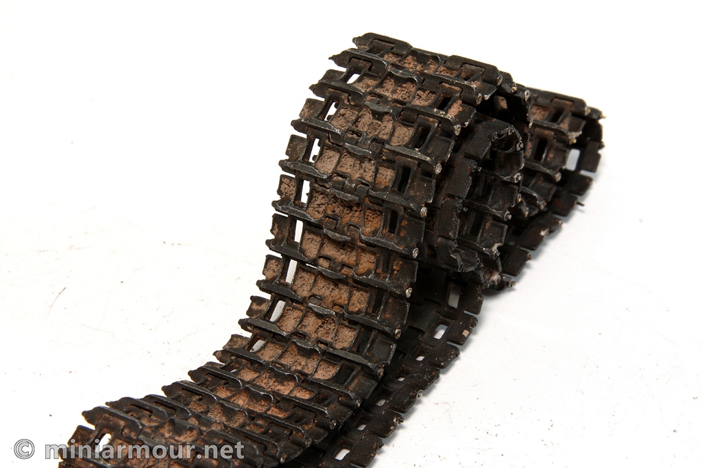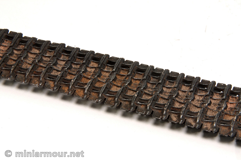 Guide horns were drybrushed with Citadel boltgun metal acrylic color and outer edges of the tracks were touched up with pigments as they looked too “clean”.