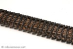 Outer side of the tracks was then weathered in two steps – first I have applied graphite from pencil with a makeup sponge brush on the surfaces that would be in contact with the ground (to apply the graphite in this way, just rub the pencil on a piece of sandpaper to get graphite into pigment-like form and you can apply it like any pigment). Then I have drybrushed the same areas with Citadel boltgun metal to give it more of the metallic sheen.