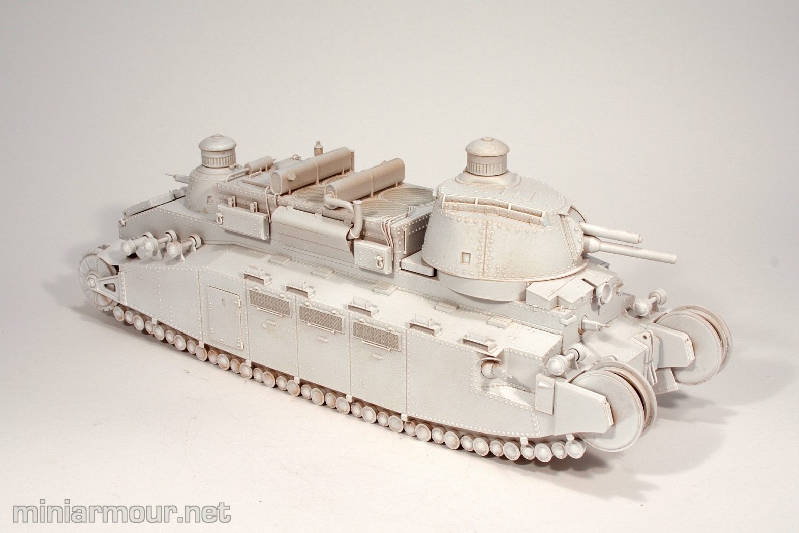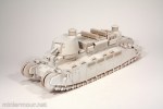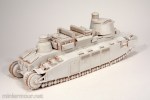 With the construction phase of the Char 2C finished, I decided to prime the model using my trusted Tamiya white primer from can. This is rather easy when the weather outside (primarily the temperature) is normal. These days, with the polar vortex behind the door, this was an interesting exercise (doing it inside is usually not a good idea…)