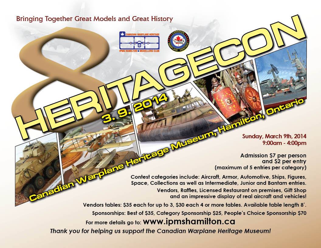 For all those who live nearby, I hope to see you in Hamilton’s Canadian Warplane Heritage Museum next Sunday. And don’t forget to bring your models…